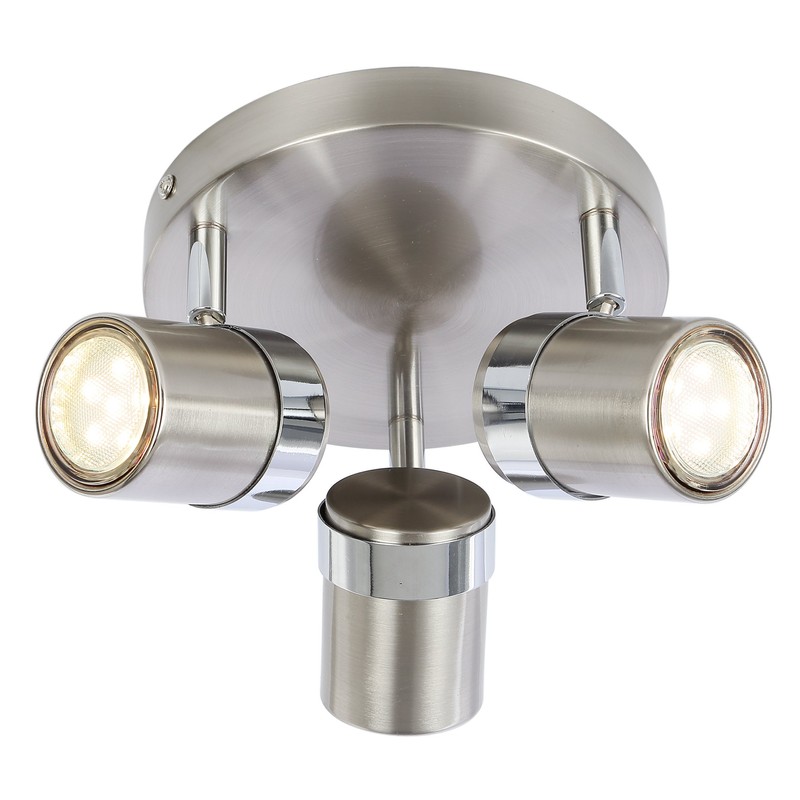 UKEW 3 Way Round Ceiling Light - Satin Stylish Home LED Spotlight with 50w Max GU10 Adjustable Heads Light Fixtures