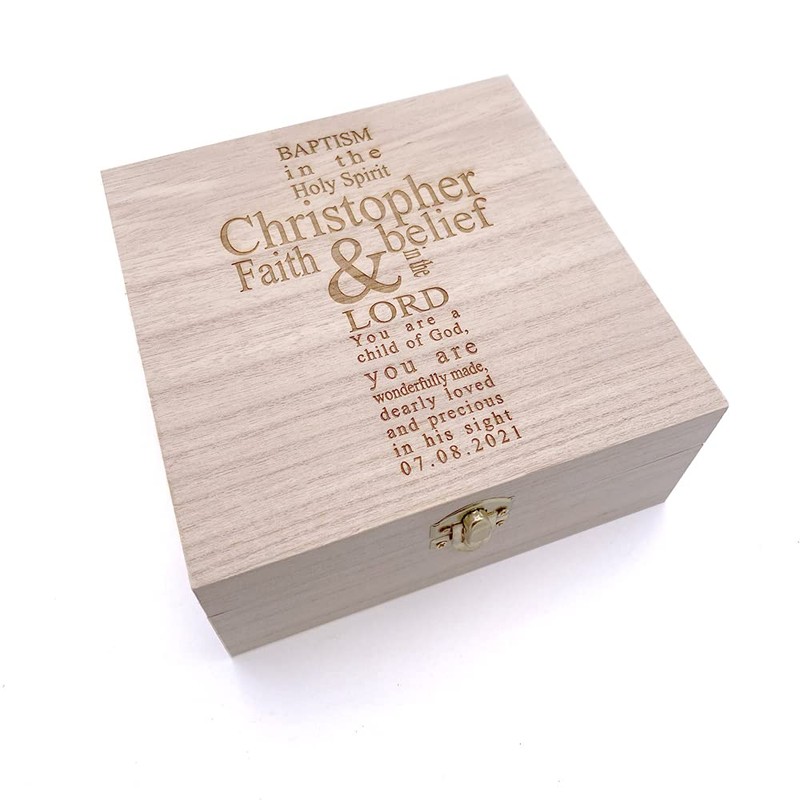 ukgiftstoreonline Baptism Keepsake Wooden Memory Box Gift