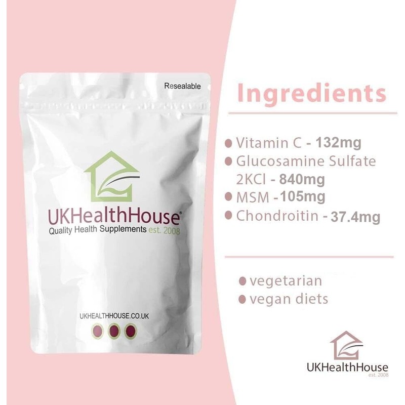 UKHealthHouse Glucosamine & Chondroitin High Strength Tablets | Glucosamine Complex with Chondroitin, MSM & Vitamin C 240 Tablets Combination Supplements for Bones