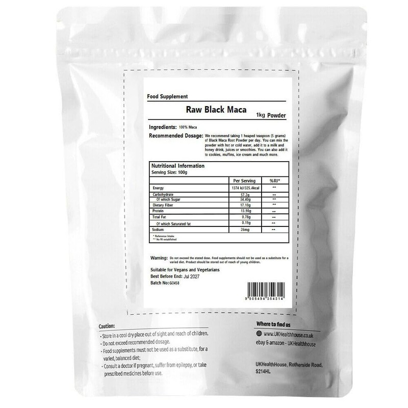 UKHealthHouse Maca Root Powder 100% Pure Peruvian Ginseng Maca Vegan Black Maca Root Powder High Strength Black Peruvian Maca Food Supplement UK (1kg)