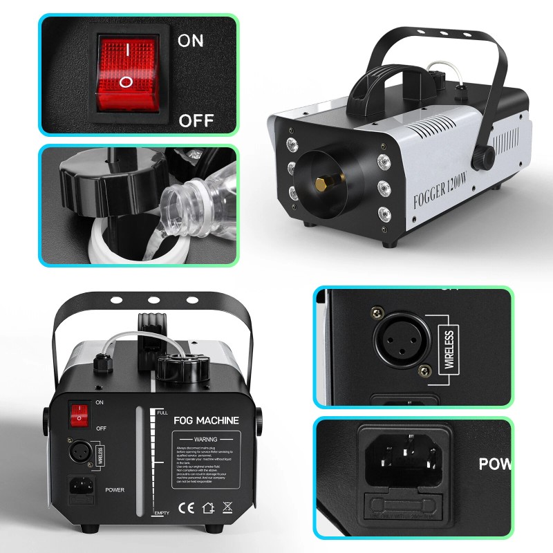 UKING Smoke Fog Machine 1200W 6LED Party Light DJ Stage Fogger Effect RGB 3IN1 Remote