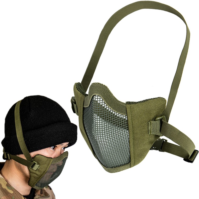 Ukiukiwaku Shoten Mesh Face Mask, Improved Fixed Band, Face Guard, One Size, Airsoft Equipment, Green