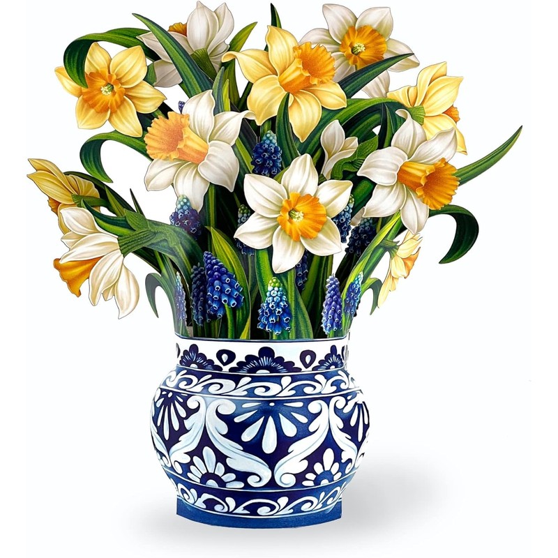 UKKQES Paper Pop Up Cards, English Daffodils,12 inch Life Sized Forever Flower Bouquet 3D Popup Greeting Cards with Note Card and Envelope (Daffodils)