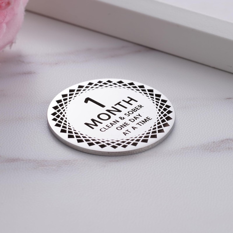 - 1 Month Sobriety Recovery Token - Tokens front engraved words: "Time Designation (1 Month) + Clean & Sober One Day at a Time". The back engraved: "Your Sobriety Is A Big Deal, I love you & I'm proud of you". Commemorate each year of being sober with new yearly AA medallions. Sobriety chips are available in 1-11 months and 1-30 years to celebrate each year/month you've been clean and sober.