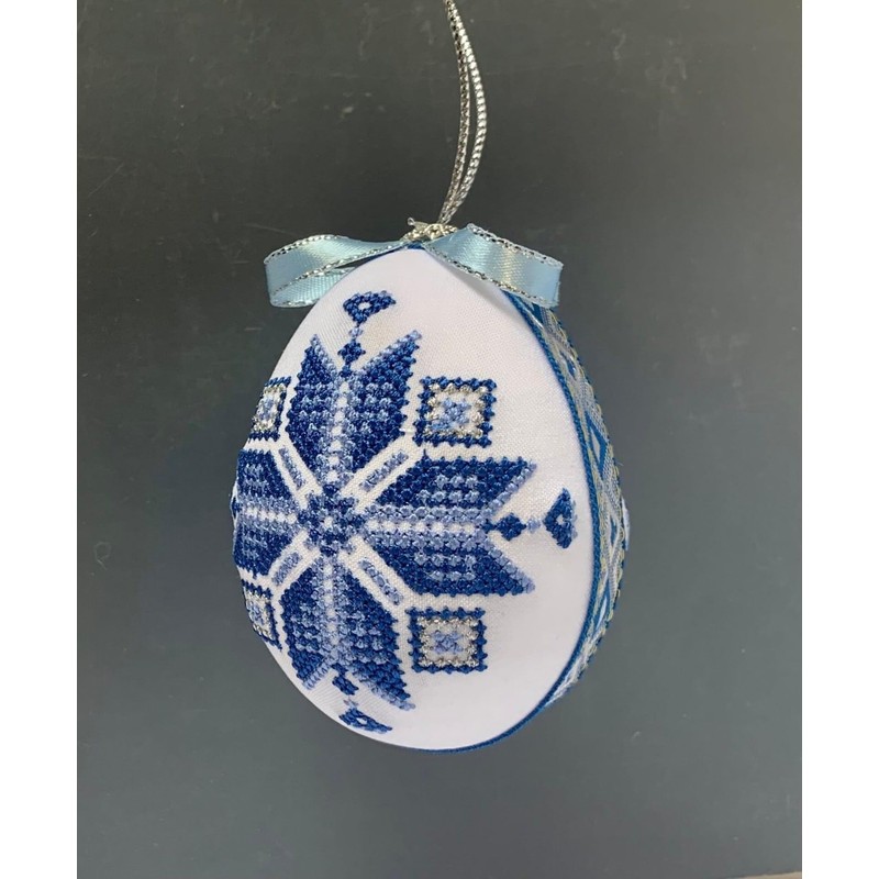 Ukrainian Easter Egg Ornament, Alatyr Star Design, Machine Embroidered Fabric, 3.5 inches, Pysanka Basket Decoration