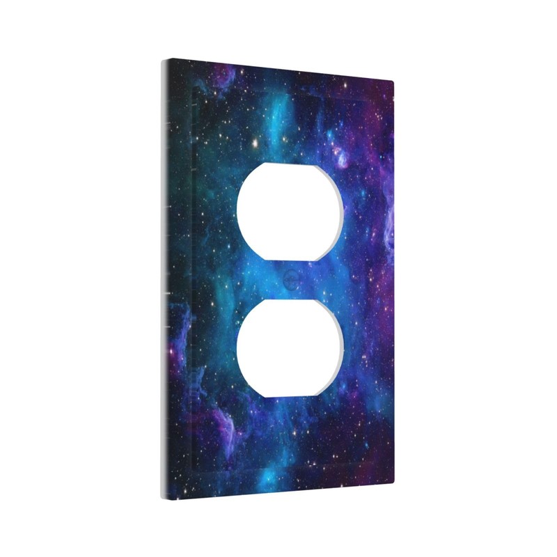 Ukutarly Galaxy Decorative Electrical Outlet Covers Space Blue Night Starry Sky Stars Universe Wall Plate Light Switch Cover Faceplate Wallplate For Kitchen Home Office Room