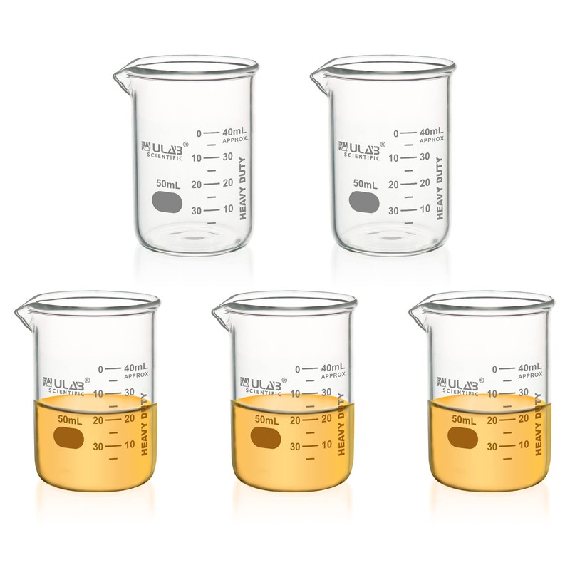 ULAB UBG1068 50ml Heavy Duty Double Scale Printed Glass Cups (5 Pack)
