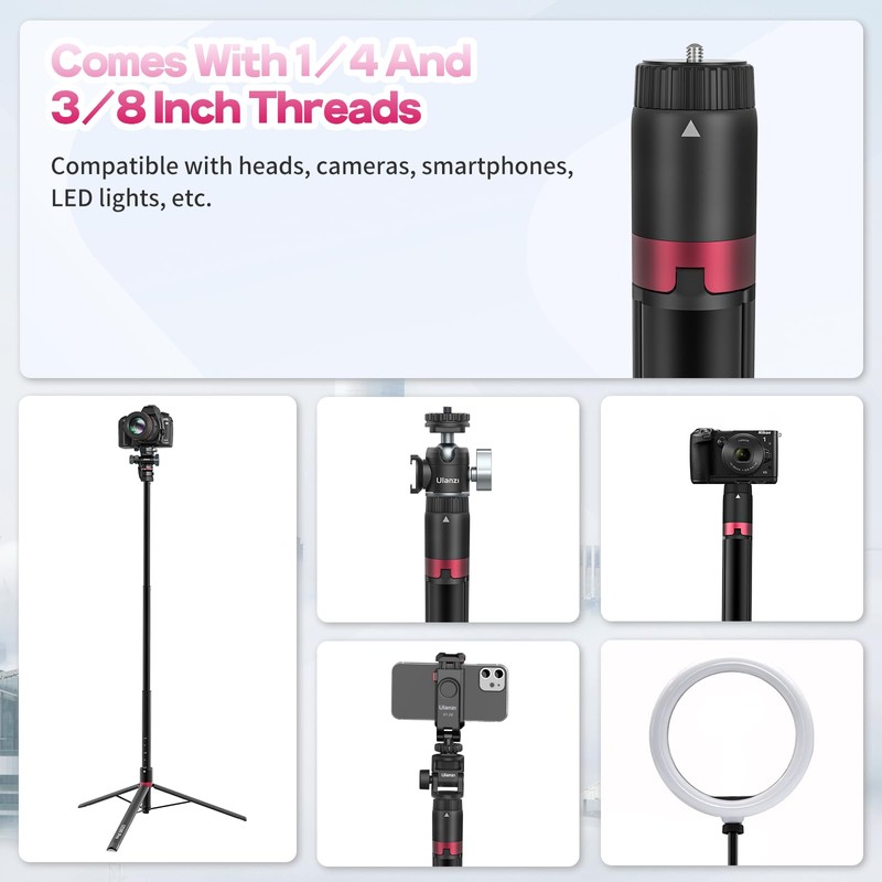 ULANZI AT-01 Extendable Light Stand Tripod, 59" Portable Vlog Camera Tripod Stand, Aluminum Camera Tripod for Camera Video Light Smartphone, Lightweight for Travel