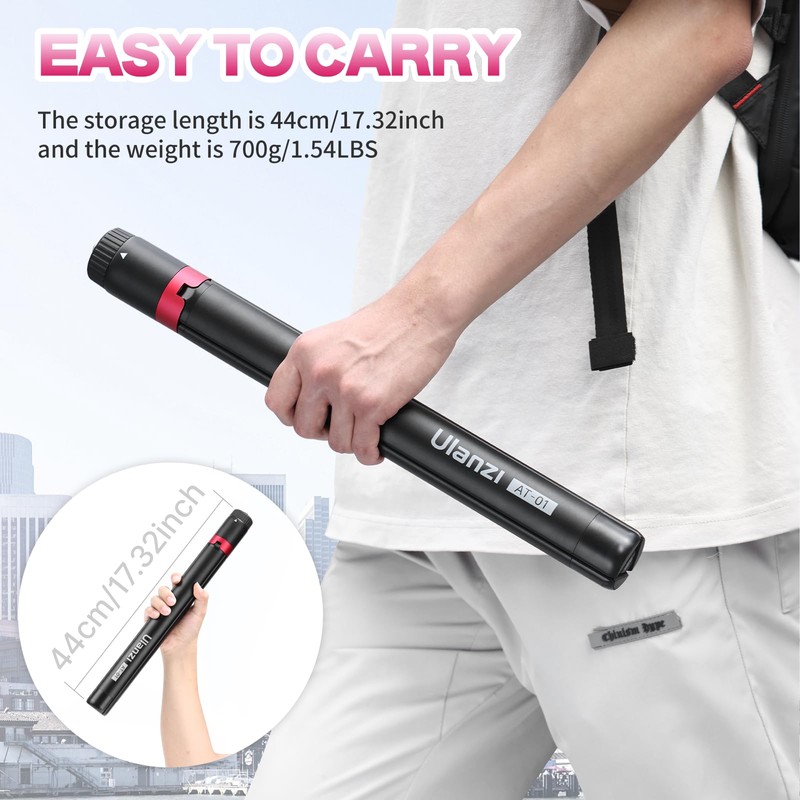 - ▶【Pack Light, Go Far】The AT01 Portable Vlog Tripod has a compact design to slip into your bag, making it ideal for on-the-go task. Storage size is only 44cm/17.32inch. Easy to carry.