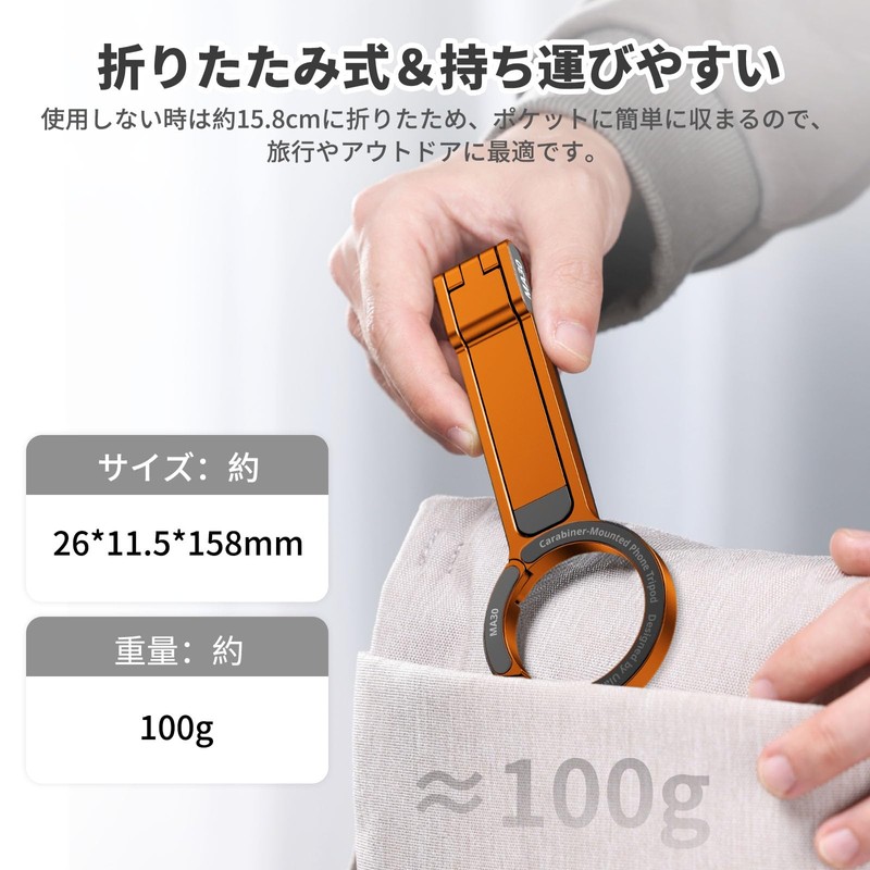 - [Foldable Smartphone Tripod for Magsafe] Ulanzi MA30 Magsafe Smartphone Tripod has evolved to a powerful magnet to hold your smartphone firmly and securely hold your smartphone. Easy one-handed installation in just 0.1 seconds. Easy to expand and fold, not only can you use it as a tripod, but it can be used as a smartphone stand at your desk or just like a selfie stick to take a selfie, it is an excellent product that can be used for many purposes in a single unit. Made of lightweight yet strong aluminum, the sturdy tripod construction and non-slip silicone pads prevent your phone from falling out. Hiking buckle design, hook hang, free hands, no burden travel, anytime, anywhere. Note: This product is only used as a cell phone holder, not an extreme sports or professional grade climbing buckle