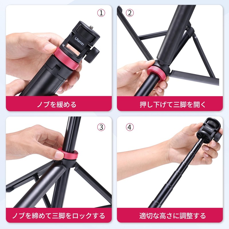Ulanzi MT-79 Photography Light Stand, Aluminum + ABS, Lightweight, 180° Rotation Adjustment, 1/4 Screw Included, 14 Screws, 7 Levels of Extendable, Foldable, Convenient to Carry, Ring Light Stand,