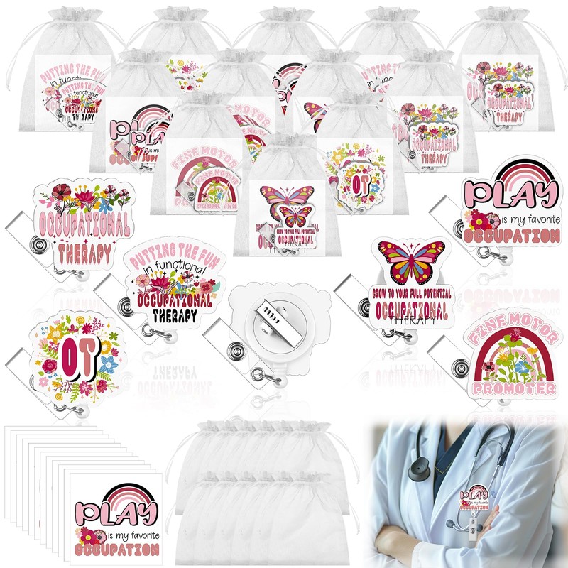 • 【What You Get】we will provide you with a total of 12 sets occupational therapist badge reel,6 styles, 12 crocodile clips + 12 card + 12 organza bag,making it neither too big nor too small, and lightweight, ideal for daily use.