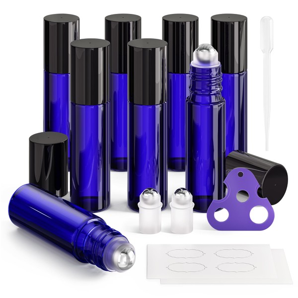 ULG 8-Pack Essential Oil Roller Bottles 10ml, Empty Bottles with Stainless Steel Roller Balls and Waterproof Labels, Roller Balls For Essential Oils,B
