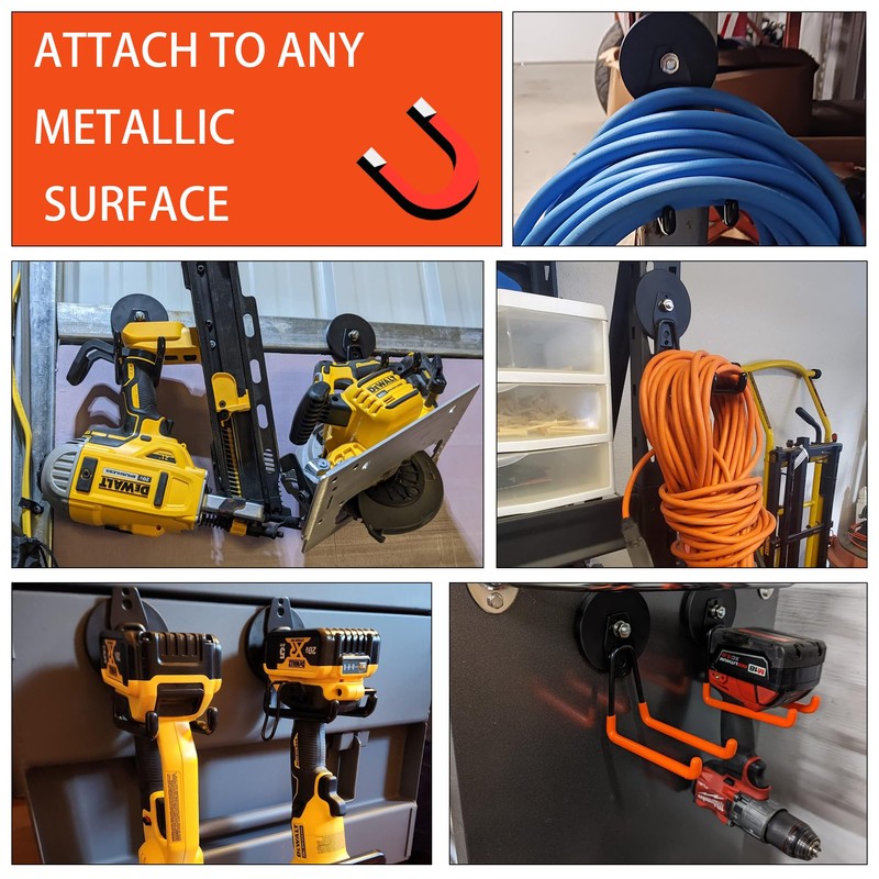 - [Heavy Duty Magnetic Hook]: Heavy duty solid steel hooks can create efficient storage space for your garden, shop, basement or warehouse. For example, to store drills, ladders, lawn mowers, garden tools, power tools, shovels, brooms, ropes, hoses, etc
