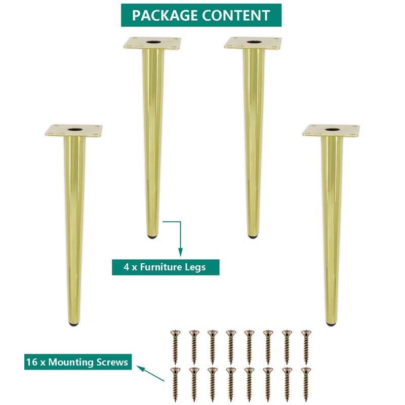 - Easy to Install - Package includes 4 pcs furniture legs. Home improvement projects don’t have to take days or - even hours - to complete! Our coffee table legs come with pre-drilled holes and screws, so installation is quick and painless for all skill levels!