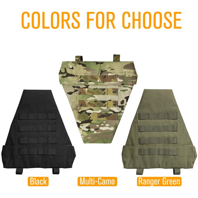 - MOLLE Compatibility: The lower abdomen platform is equipped with MOLLE compatibility, thereby increasing its versatility and adaptability in various settings. The MOLLE straps integrated into the panel facilitate seamless attachment to other MOLLE-compatible gear, including vests, belts, and backpacks.