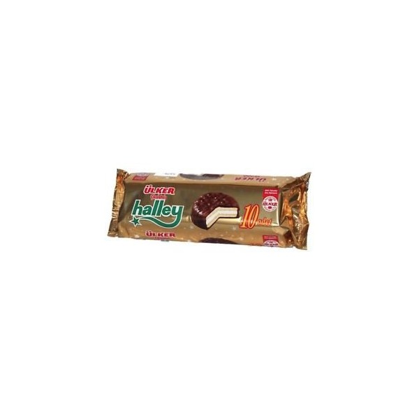 Ulker Halley Chocolate Cookies are just irresistible. The soft fluffy marshmallow on the inside is covered with a thin layer of biscuit crust and topped with quality chocolate that is made in Turkey. Cookie gives the impression that it will completely crumble in ones hand but actually lasts till the end, tasting every so interesting.