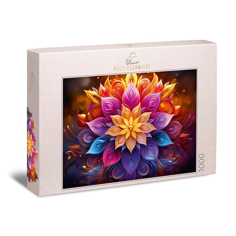 Ulmer Puzzleschmiede - 1000 Piece Puzzle Neon Mandala - Flower Blossom Design as Mandala Puzzle - Puzzle-Friendly Colours & Contrasts - Puzzle Quality Made in Germany