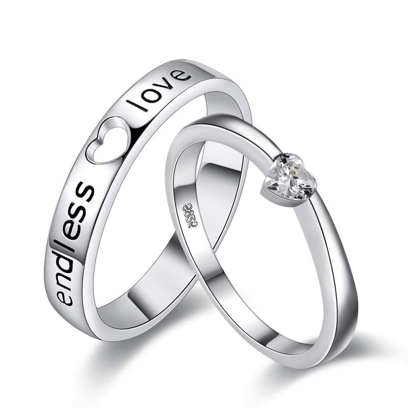 - ♥ Metal Material -- This charm couples ring set is using eco-friendly brass, white gold plated color, 3 times finish by human hand, smooth and mirror polishing on outside metal surface.