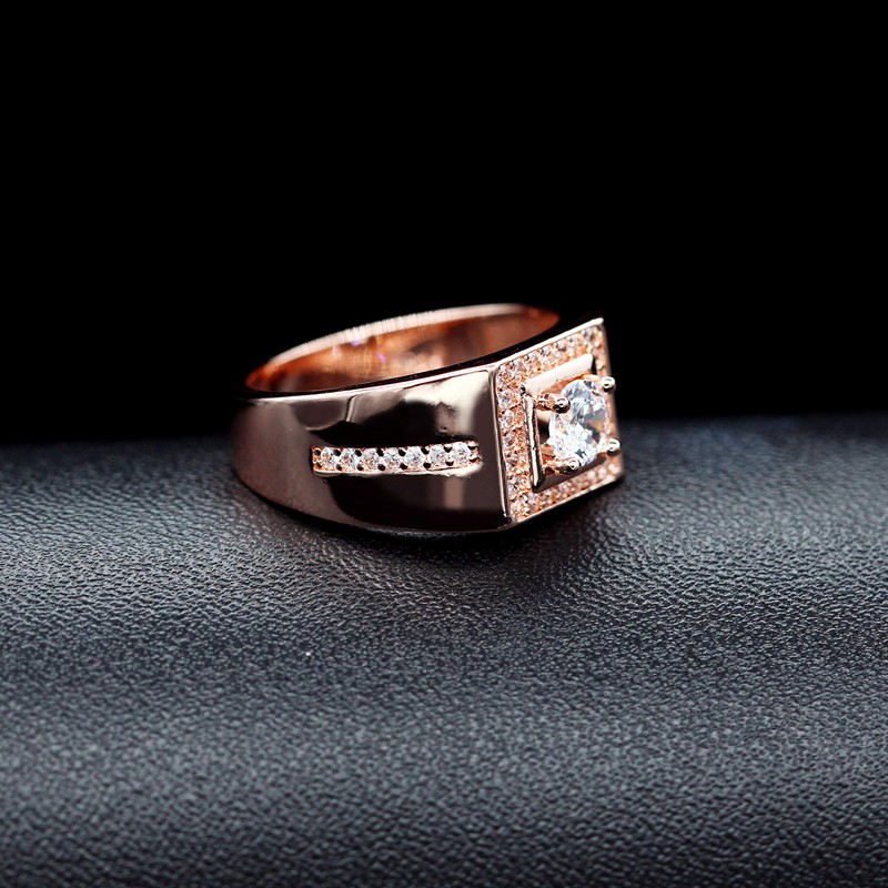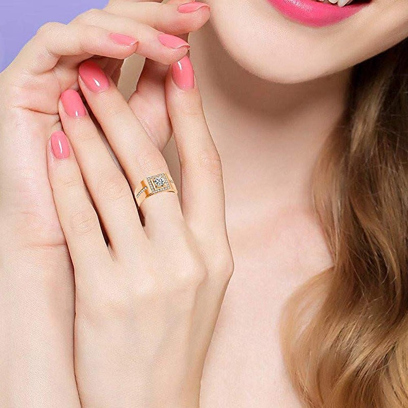 - ♥ Specification: Metal: Rose gold plated brass, Character of the Main Stone: Zirconia, Main Stone Size: 5*5 mm; Band Width: 8 mm; Weight: about 6.4g, Finish: Polished and Brilliant, Diamond: Round Shape, Color of the Stone: White, Inlay: Claws & Channel Setting.