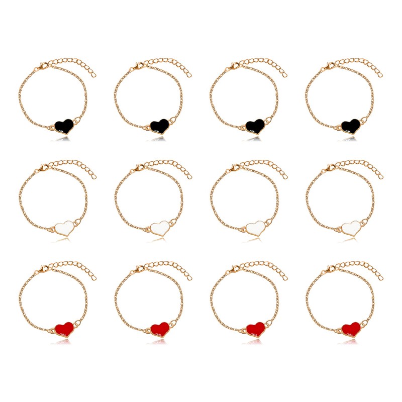 Uloveido Cute Love Heart Bracelet, Mix Color Red White Black, 1 Doz/Pack (Mix Color/ 1 Doz)