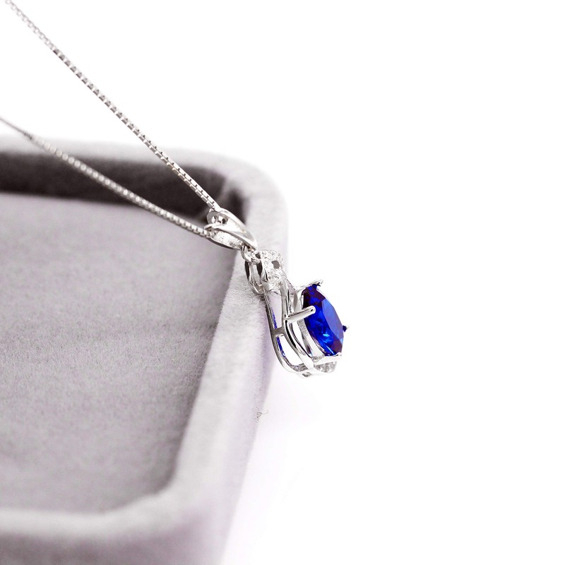 - ♥ Stone material: oval cut blue corundum sapphire. Stone size: 6*8 mm, weight 1.6ct; Necklace weight: pendant 1.1g+chain 1.1g
