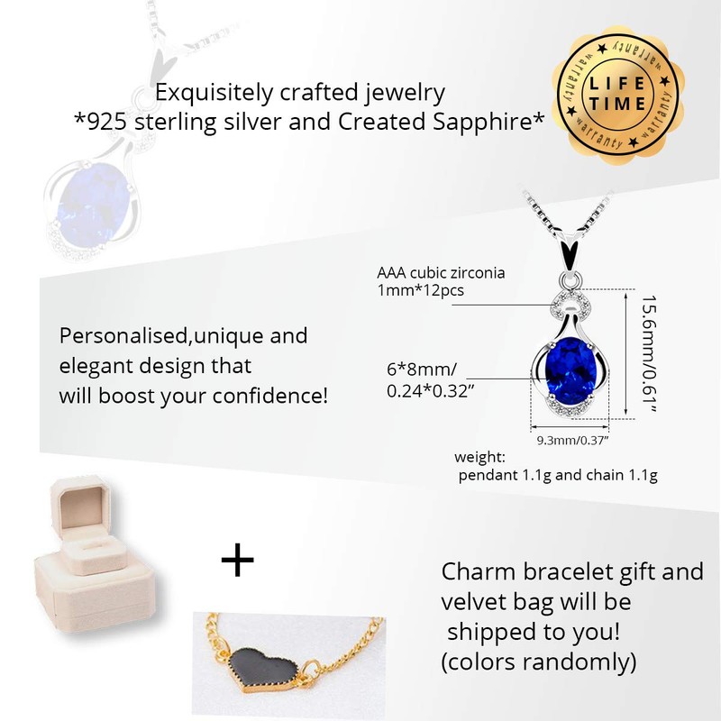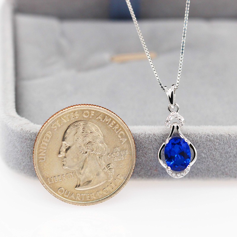 - ♥ Stone material: oval cut blue corundum sapphire. Stone size: 6*8 mm, weight 1.6ct; Necklace weight: pendant 1.1g+chain 1.1g