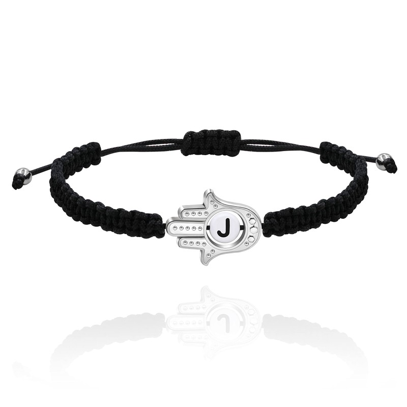 Uloveido Letter J Hand of Fatima Bracelet Hamsa Hand Evil Eye Lucky Charm Protection Bracelet Braided Adjustable Valentines Gifts for Her Y3791-J