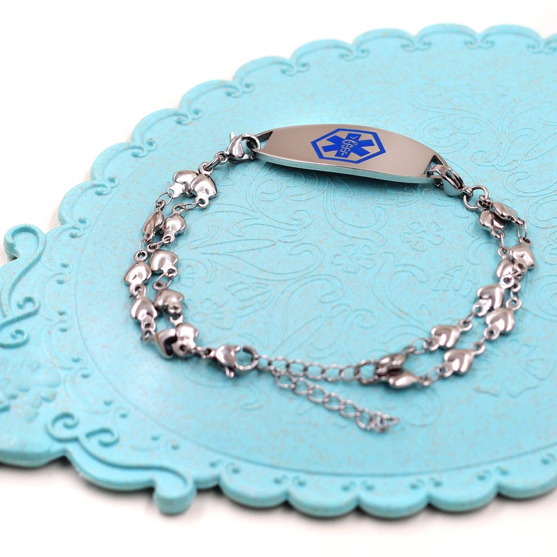 - 1. Medical Alert Identification Bracelet: This bracelet engraved with Blood Disorder, Epilepsy, Type-1 Diabetes, Type-2 Diabetes, Asthma, Mental Health Conditions, Penicillin Allergy, Diabetes on Insulin, No BP/IVS/Needles, Cancer, Coumadin, Eliquis, Pacemaker, Warfarin, Xarelto, or Heart Disease. Ideal for medical alerts or as a unique way to convey important health information.