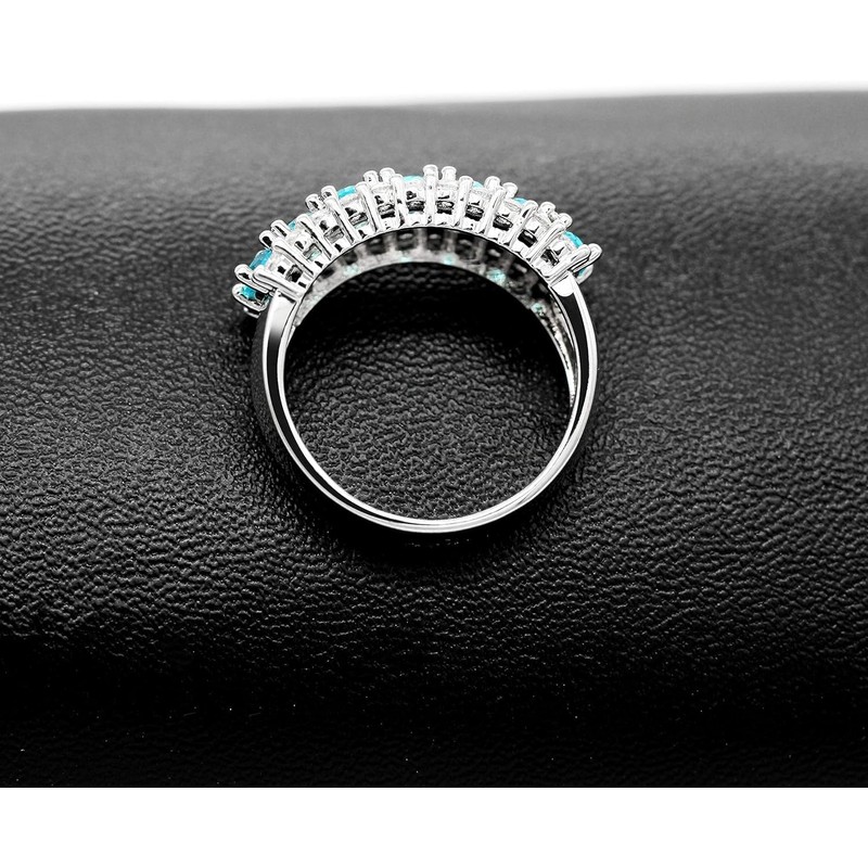 Uloveido Platinum Plated Oval Light Blue Cubic Zirconia 7 Stones Wedding Band,Simulated Aquamarine Ring J501 (Platinum,Light Blue,Size 6)