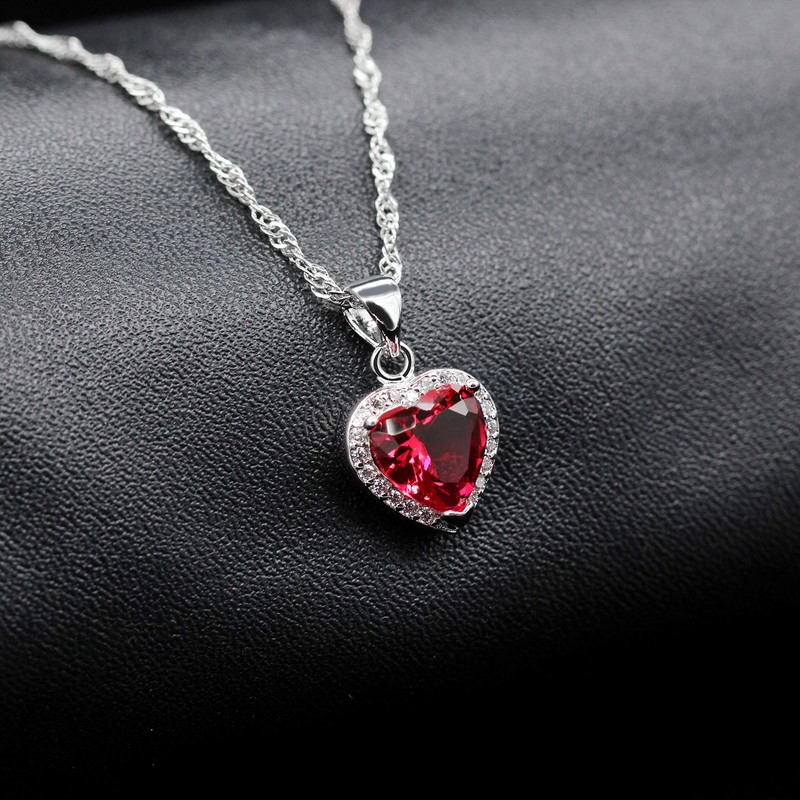 Uloveido White Gold Plated Wedding Bridal Red Jewellery Set for Girls Heart Earrings Pendant Necklace and Rings Set for Women Anniversary Engagement Birthday Jewellery Gift T481