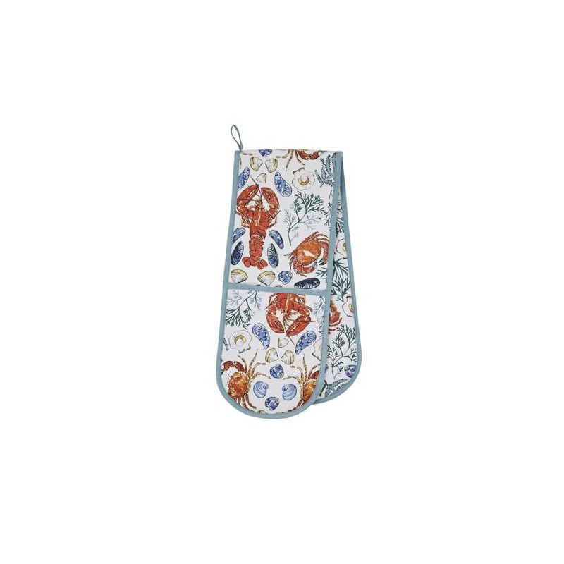 Ulster Weavers - Ocean Sea Animals Double Oven Gloves (88 x 18cm) - 100% Cotton - Lobster Oven Gloves Heat Resistant - Washable - Oven Gloves with Crabs & Seashell - Nautical Kitchen Accessories