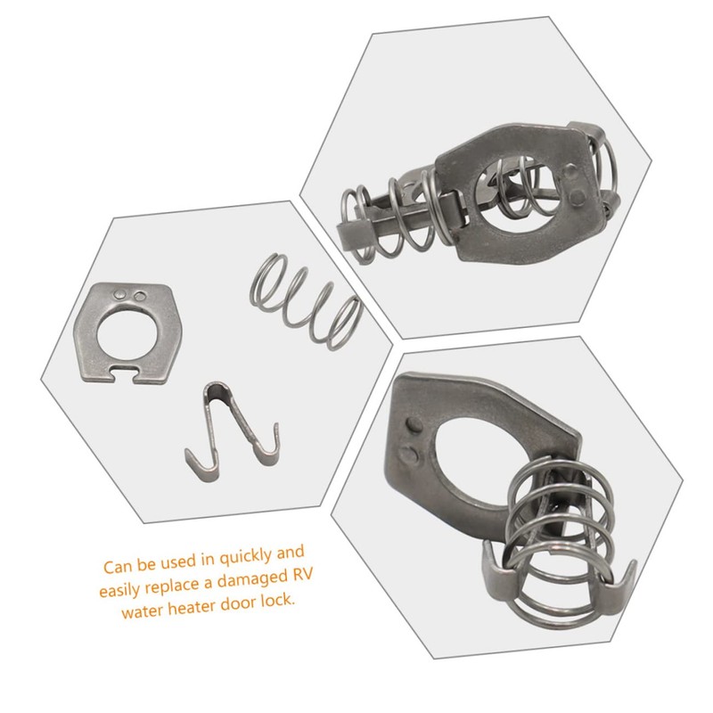 Camper Water Heater cam Fine workmanship, ensures practicality.water heater This rv water heater door latch will make the repair and fix easier and smoother. rv water heater parts This rv water heater door latch is made of , which can withstand use.rv water heater door latch Features the stainless steel material, which has high durability, not easy to deform
