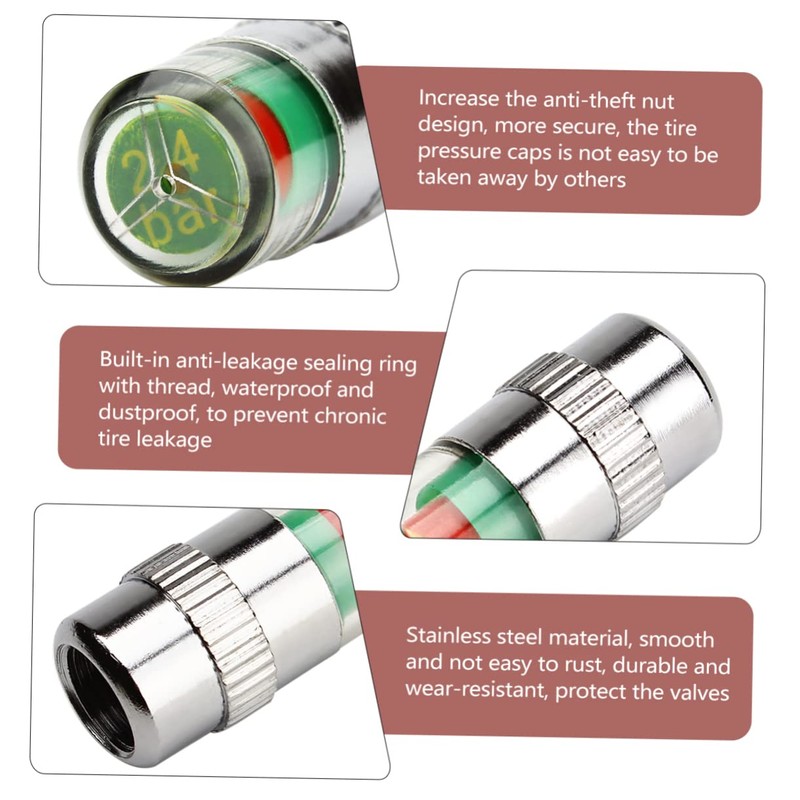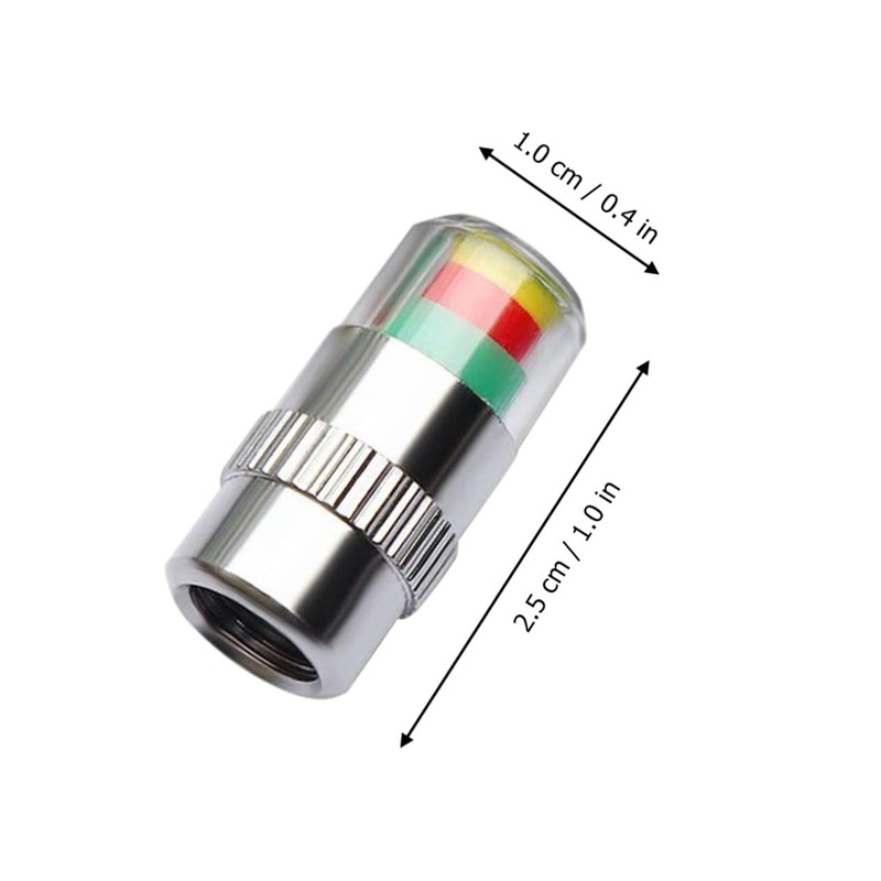 Warning: The tire pressure is slightly lower than the about 10%, the transparent window is yellow-green, and it should be inflated in time Tire Pressure Monitor Stem Caps.