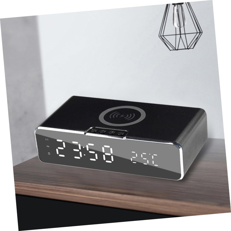 ULTECHNOVO 1set Wireless Charging Dock Alarm Clock for Smartphones and Earphones Multi-Function Desktop Clock Temperature Display Date Brightness Settings
