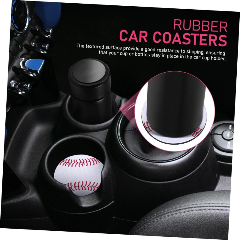 ULTECHNOVO 2pcs Cute Car Cup Coasters with Baseball Pattern Rubber Drink Mats for Car Nonslip Truck Accessories Protects Cup Holders Enhances Interior Style