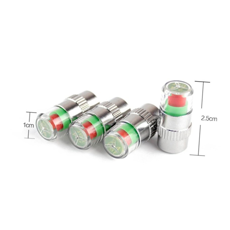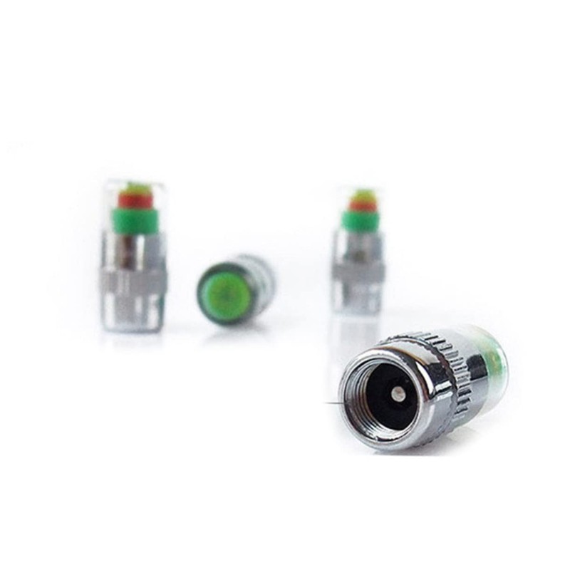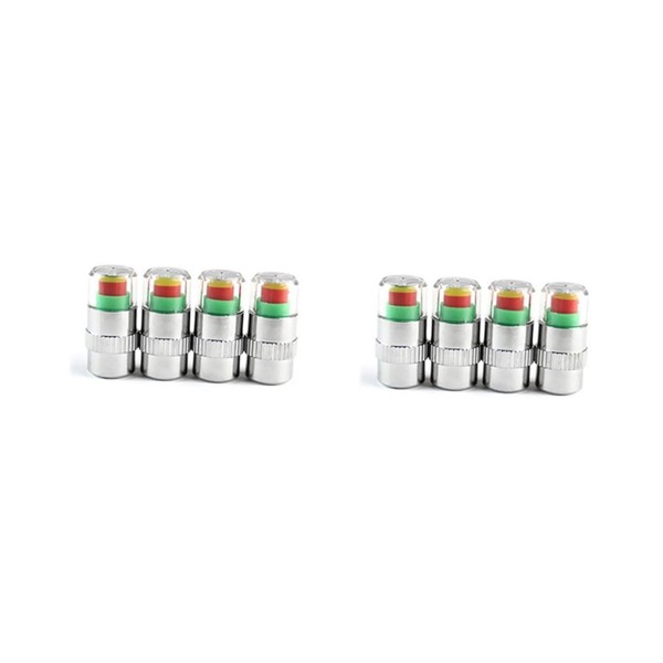 tire pressure caps Green shows that the tire pressure is normal, Yellow shows that the tire pressure is down about 10 %, you that the pressure is down by at least 25%.tire sensor Visually alerts you when the tire pressure is low, to help avoid premature tire wear or blowouts from under-inflated tires.tire pressure sensor The item is a set of 4 Pcs Car Tire Pressure Monitor Stem Caps, which is compatible with Cars, Trucks, Bicycles, Motorcycles, , Antique Cars, Classic Cars, , etc