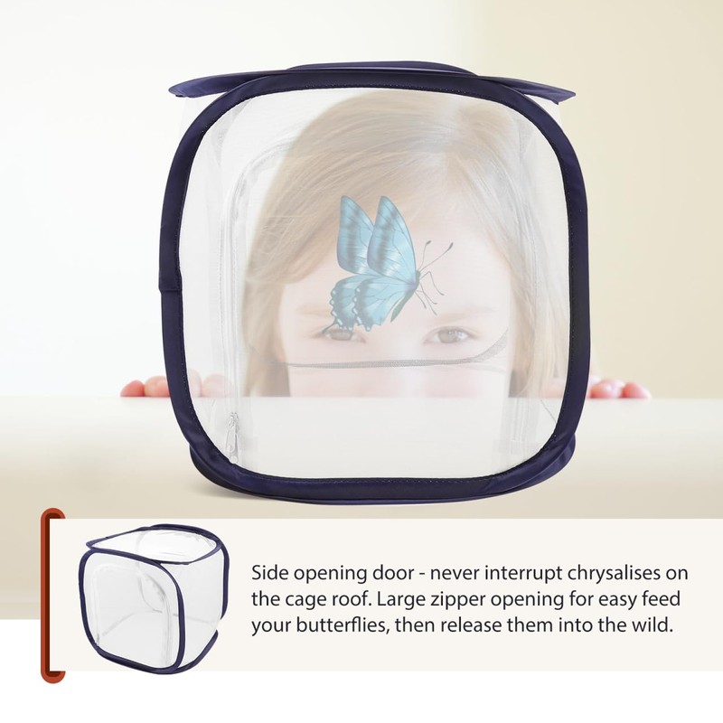 - Large zipper side opening for easy feed your butterflies, then release them into the wild. Butterflies will often land on little hands and faces before flying away. Includes a quick start guide manual to raise butterflies.butterfly enclosure