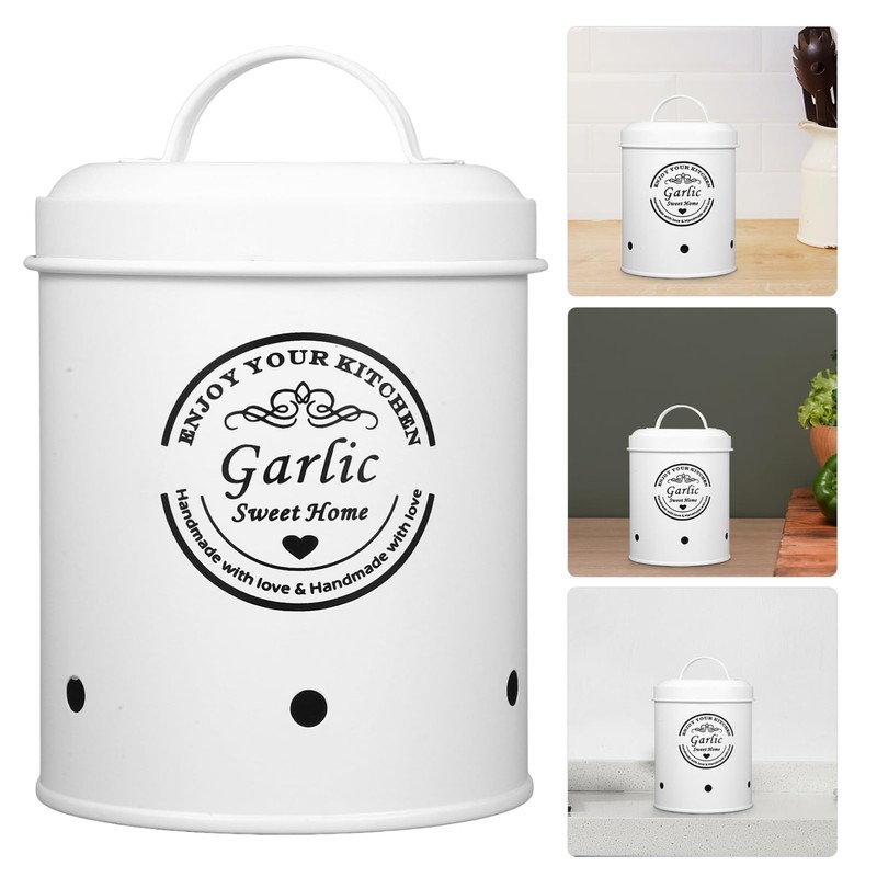 - Farmhouse Decor: This garlic holder canister with simple and elegant appearance will be a modern and stylish kitchen ornament addition, large capacity is enough to place garlics, onions, potatoes or gingers, and can also be used to store foods for different uses.
