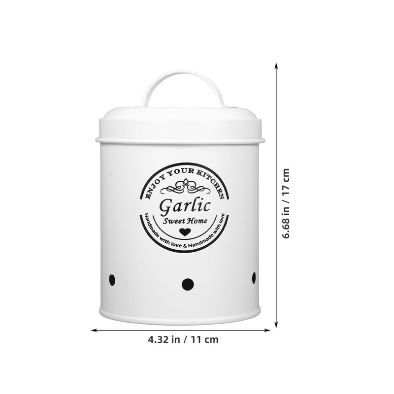 - Package Includes: 1 x Garlic Keeper with metal Lid; 6.68X4.32X4.32inches, can hold 6 to 10 heads of normal-sized garlics, can even hold 4 potatoes.