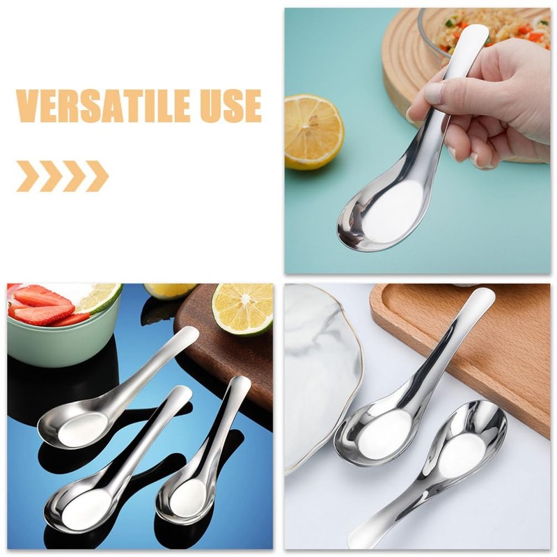 ULTECHNOVO Thai Chinese Asian Stainless Steel Rice Soup Spoon 6pcs Stainless Steel Serving Spoon For Kitchen Use
