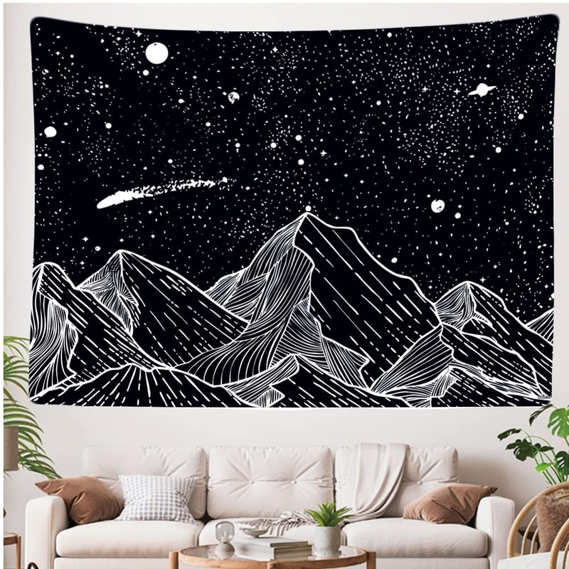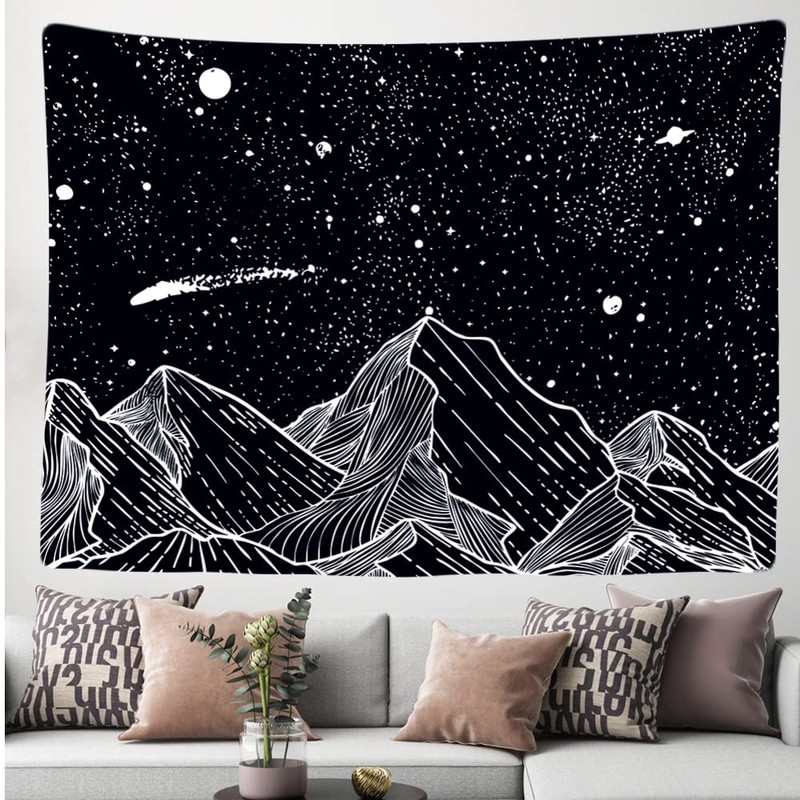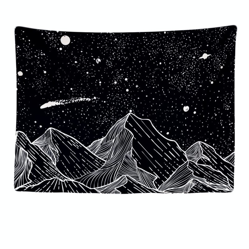 Ulticool – Decorative Wall Tapestry Bedroom - Mountains Nature Space Black White - 200 x 150 cm Large – Fabric Wallpaper – Tapestry Aesthetic Wall - Panoramic Decoration