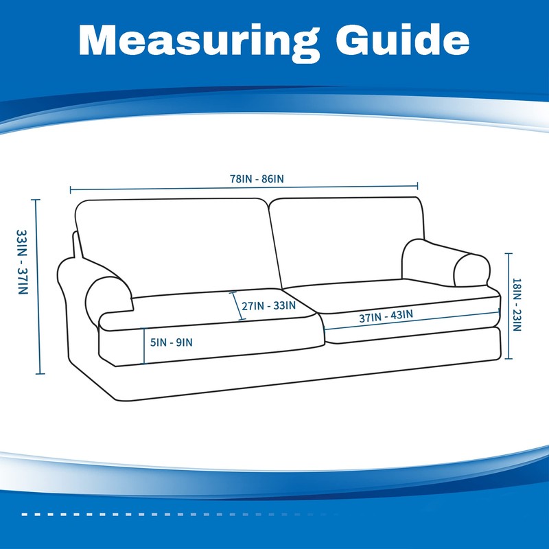 - EXTRA WIDE 2 SEATER T SHAPE CUSHION SOFA FIT: Our 3 piece ,extra wide 2 Seater T-shape cushion Sofa cover is made to fit perfect most extra wide 2 seater sofas , made with 3 seperate pieces including 1 Sofa cover And 2 cushion cover pieces, so It would snugle fit perfect on most 2 seater sofas that are sizes 72" - 86" inches More details please refer to the measurement guide in photo, please measure before purchasing.