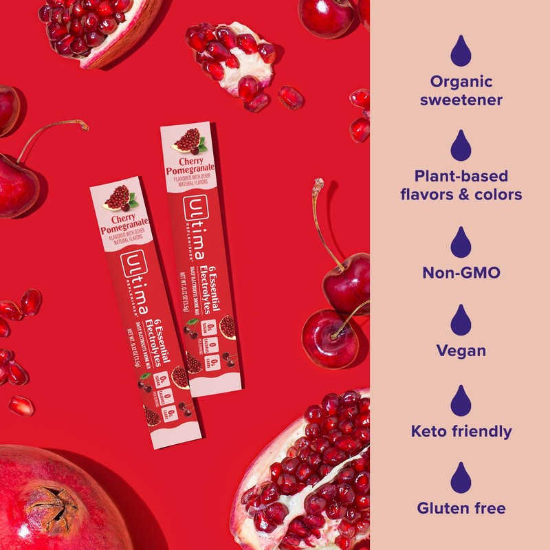 Ultima Replenisher Daily Electrolyte Powder Drink Mix – Sugar Free – Cherry Pomegranate, 20 Stickpacks – Hydration Packets with 6 Electrolytes and Minerals – Keto Friendly, Vegan, Non-GMO