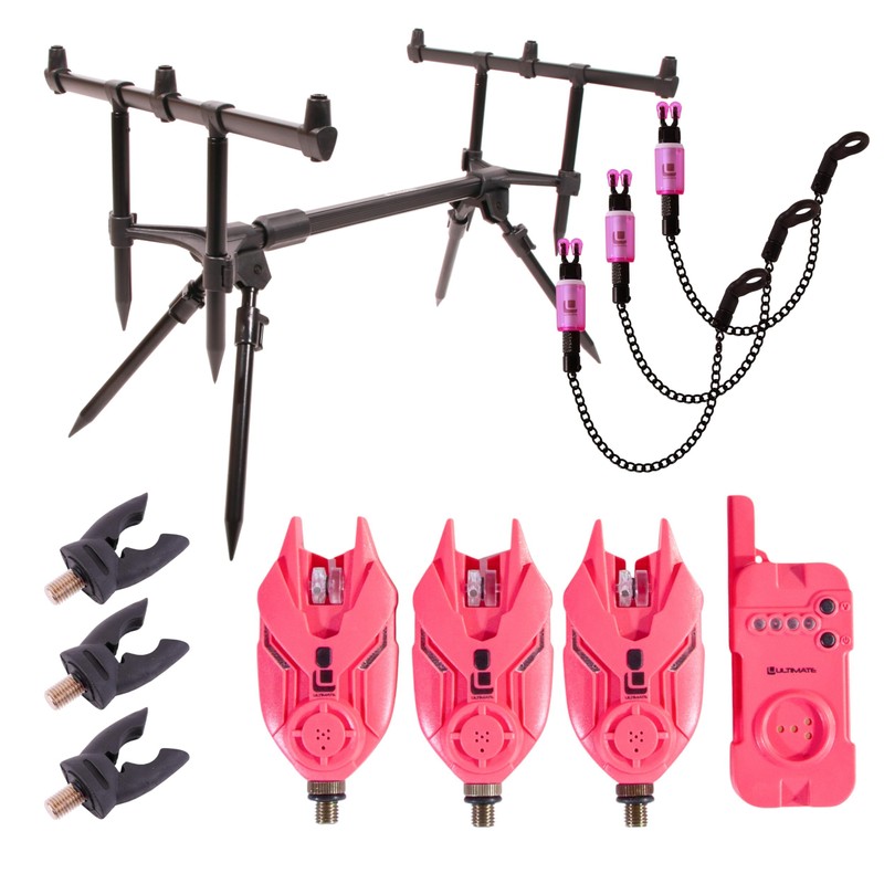 • 1 x Ultimate E-tension pink bite alarm set 3 + 1.