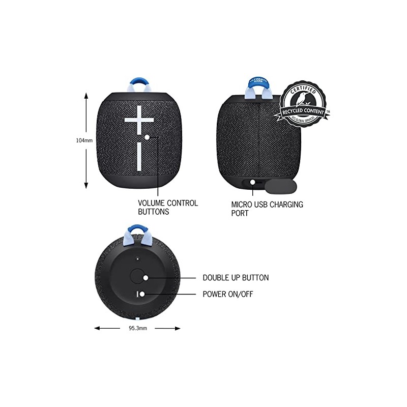 - Double up for stereo: Pair 2 WONDERBOOM 3 cordless speakers for even louder sound; press once to double up and press again for true stereo from both speakers, with left and right channels