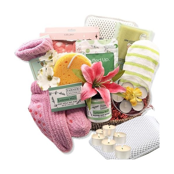 - COMPLETE SPA SET: Luxurious gift basket featuring soothing bath accessories, cozy socks, scented candles, and premium skincare items for ultimate relaxation