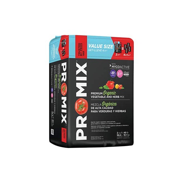 Pro Mix, 2.0 CUFT, Ultimate Organic Vegetable & Herb Mix soil, compressed bale, contains 4 CUFT of soil, Omri certified, formulated with all natural ingredients, contains an organic fertilizer that gradually feeds plants, suitable for all vegetables and