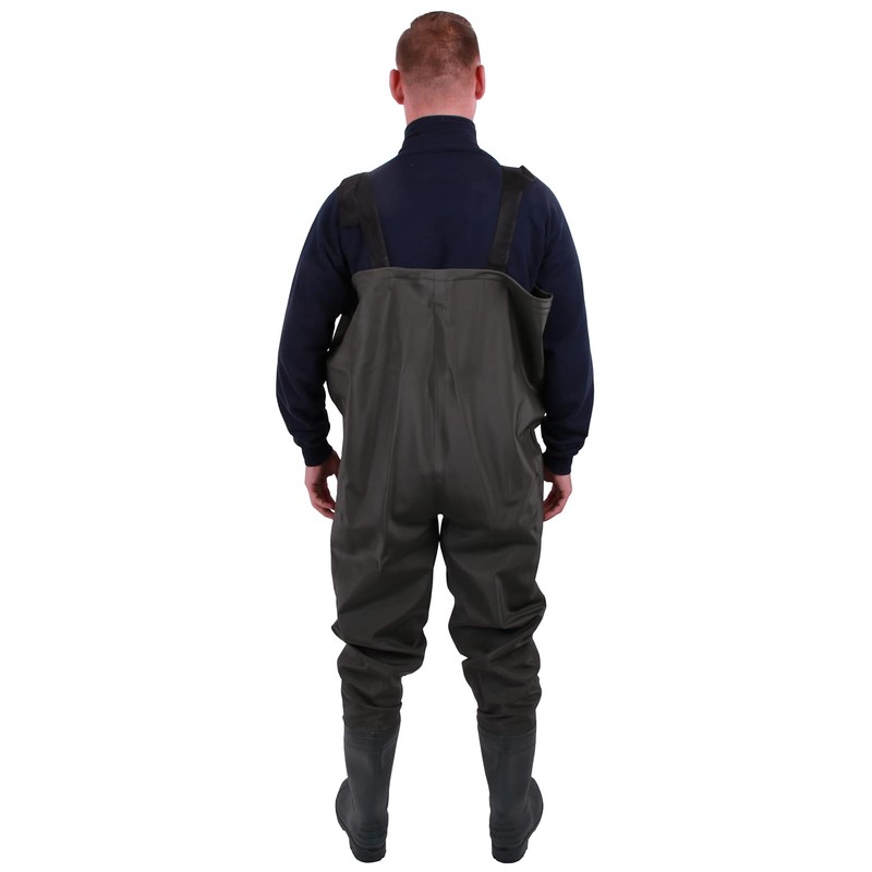 Ultimate PVC waders - chest waders - available in shoe size 41 to 46 - made from robust PVC - 100% waterproof - colour: dark green - adjustable shoulder straps - quilted and taped seams - robust boots - easy to put on - high comfort - sole with good profile provides enough grip - pocket on the inside - great value for money. The PVC waders from Ultimate are made from robust but flexible material and in an inconspicuous . With these robust waders, you can go and fish in a little deeper water than with waders. Due to the elasticity of the material, the waders are never too loose or too tight. In addition, the shoulder straps are adjustable for optimal comfort. The boots also have a profiled sole that provides a good grip on any surface. Available in various shoe sizes.
