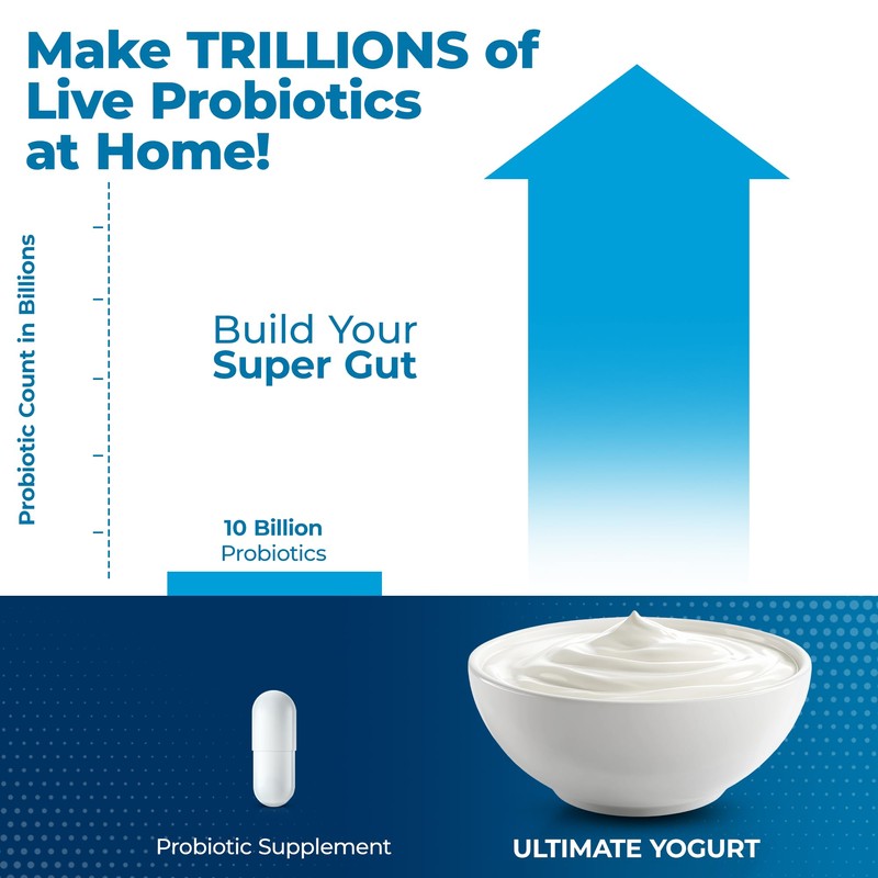 - MAKE PROBIOTICS THAT MAY SUPPORT WEIGHT LOSS, COLLAGEN FORMATION & ENERGY - Probiotics have an abundance of benefits. With the Ultimate Probiotic Yogurt Maker, you can culture trillions of high-quality probiotics which may support your gut health & microbiome which may support weight loss, reduced inflammation, improved energy, and improved mood.